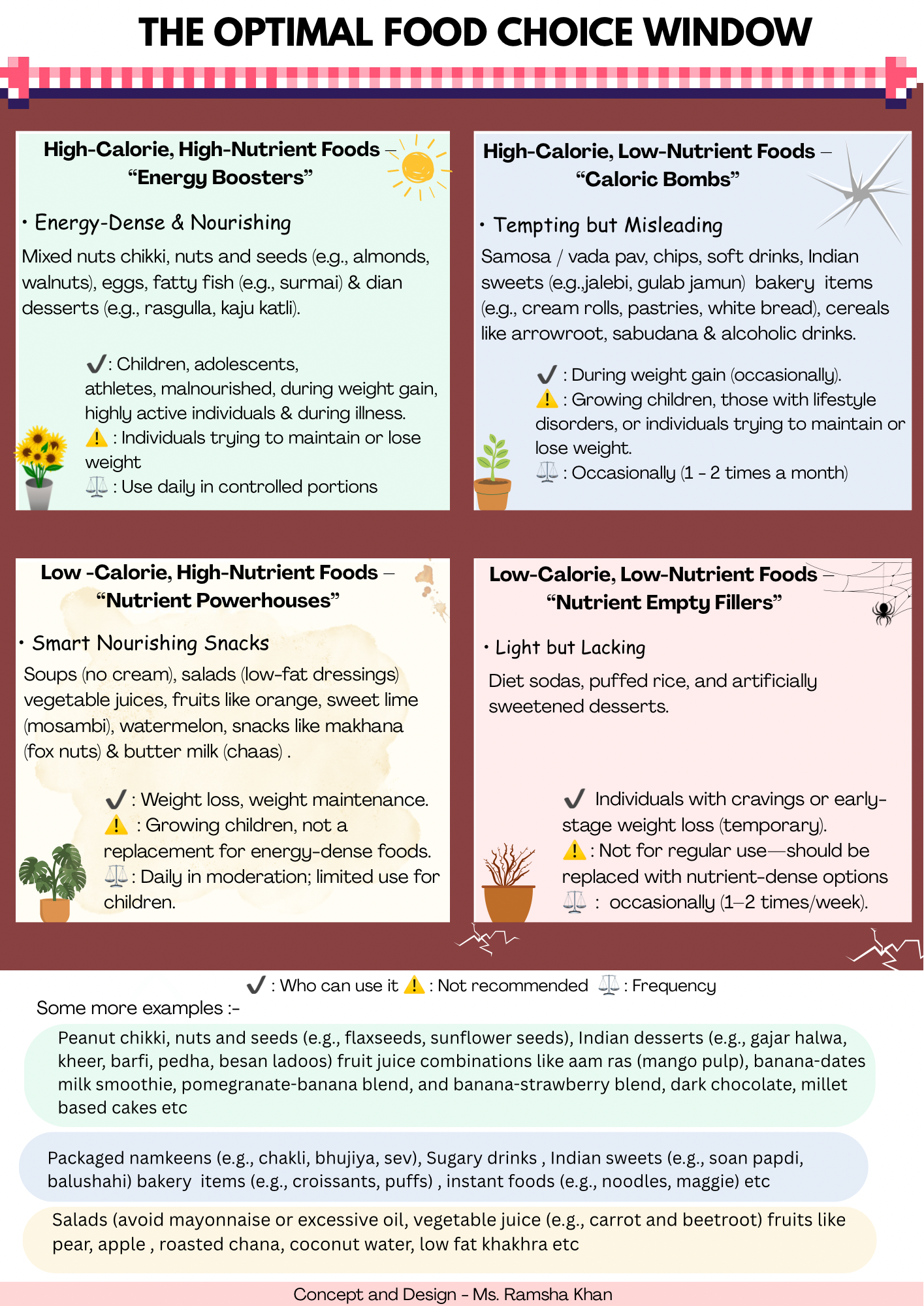 To truly understand the impact of our food choices, it helps to think beyond numbers and labels. One helpful way to visualize this is by applying a framework inspired by the Johari Window, traditionally used to explore self-awareness to nutrition. In this model, foods are grouped based on two key criteria: their calorie content (low or high) and their nutrient density (low or high). This gives us four categories of foods…